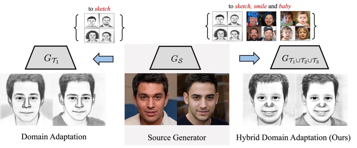 Few-shot Hybrid Domain Adaptation of Image Generators